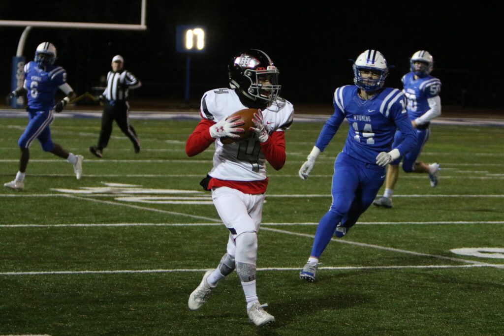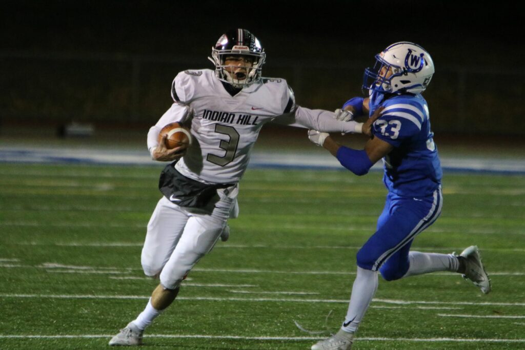 CINCINNATI, Ohio – Defending Division IV state champions Wyoming held on to edge Indian Hill, 21-18, to finish the regular season 10-0 for a fourth straight year. It was the 25th straight win overall and 41st consecutive regular season victory for the Cowboys.