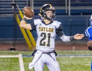 Gage Hall, Jr, RB/slot/ATH – A do-it-all skills positions player that offers the Taylor offense versatility. Hall has thrown for 1,037 yards, ran for 295 yards and accounted for nine touchdowns (six pass, three rush), in his career.