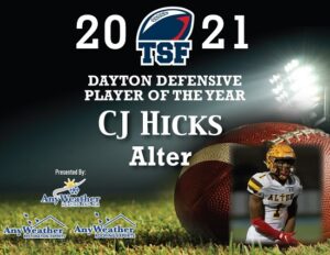 Gifted would be an understatement when talking Alter linebacker CJ Hicks. His talents have him being honored as the TriState Football Dayton Defensive Player of the Year, as TSF paid tribute to the area’s finest from Cincinnati, Northern Kentucky, Dayton and Southeast Indiana at the Year in Review Show on Monday night, in front of a packed house at the Holy Grail in downtown Cincinnati.