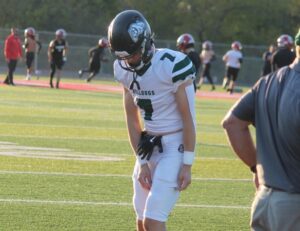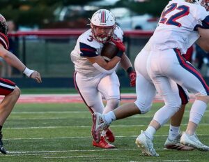South Dearborn RB/LB Brady Ballart (photo by Sandy Mahoney / X: @InMotionBySandy)